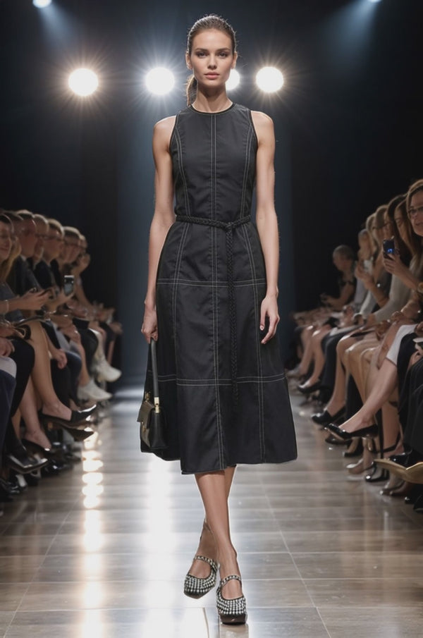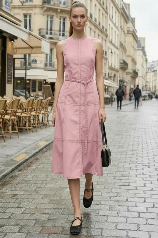 STITCH DETAIL MIDI DRESS W / BELT