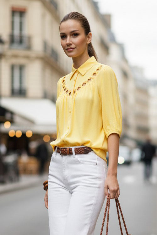 Cut Out Yoke Detail Blouse