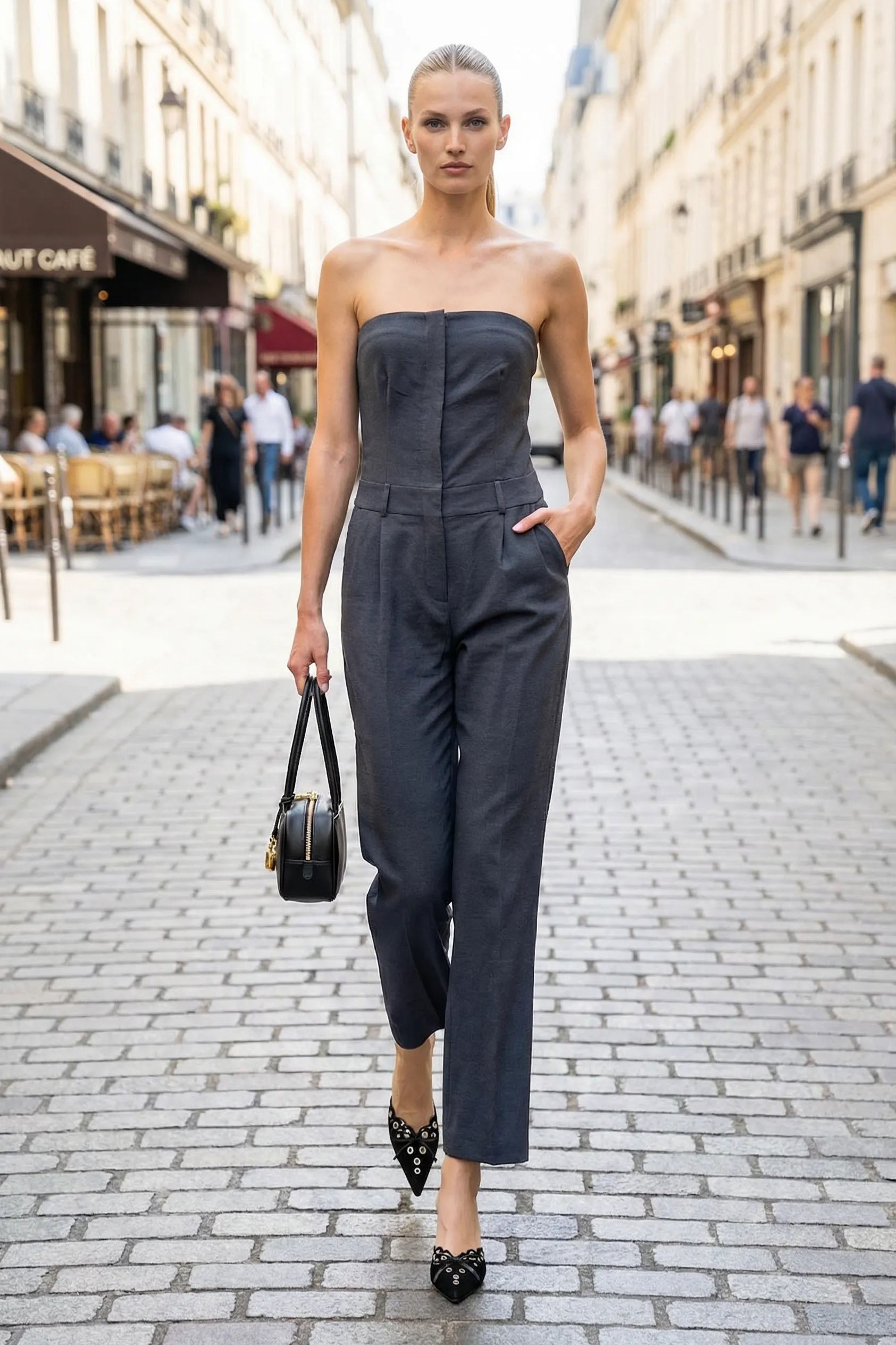 BUSTIER PLEATED STRAIGHT-LEG JUMPSUIT