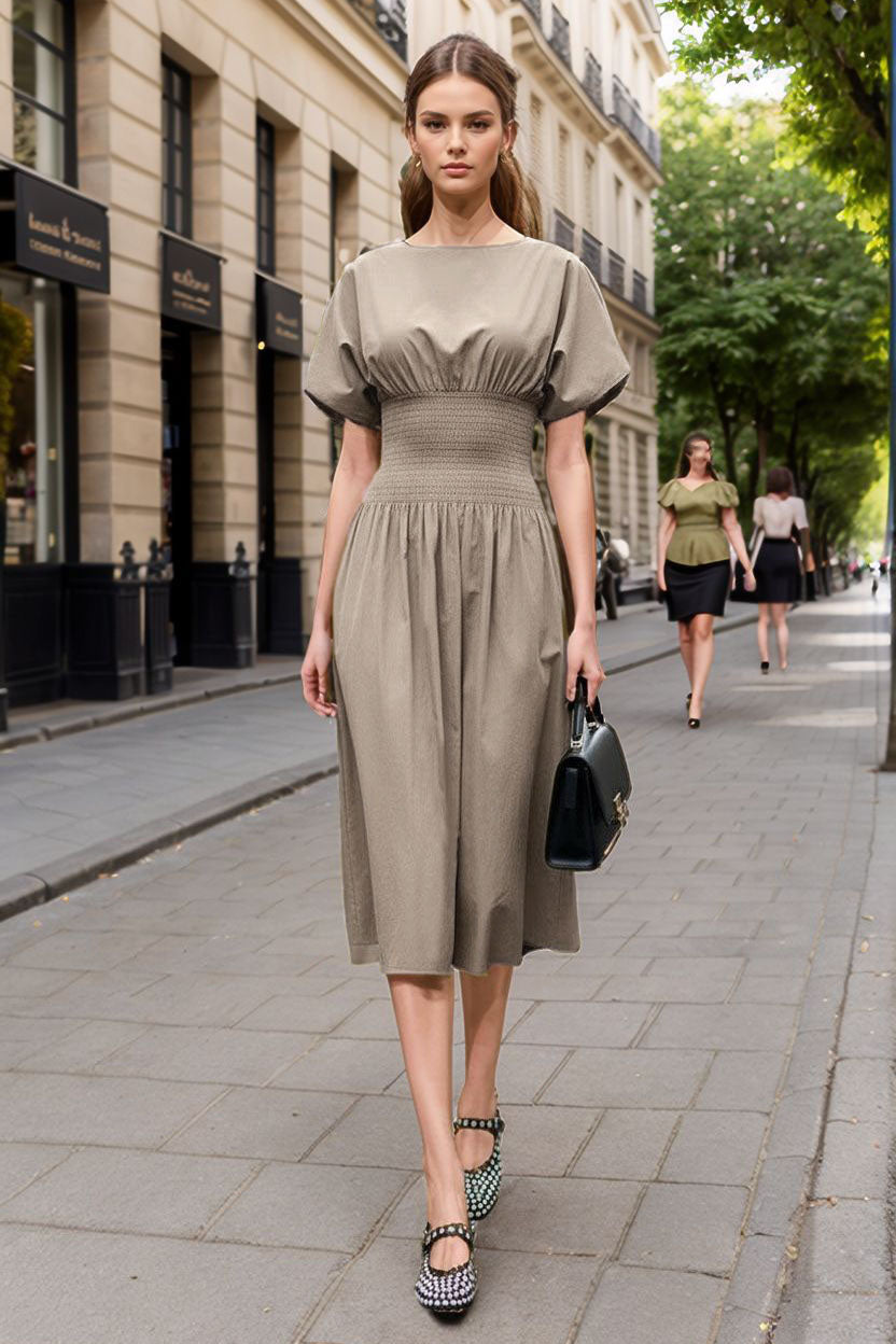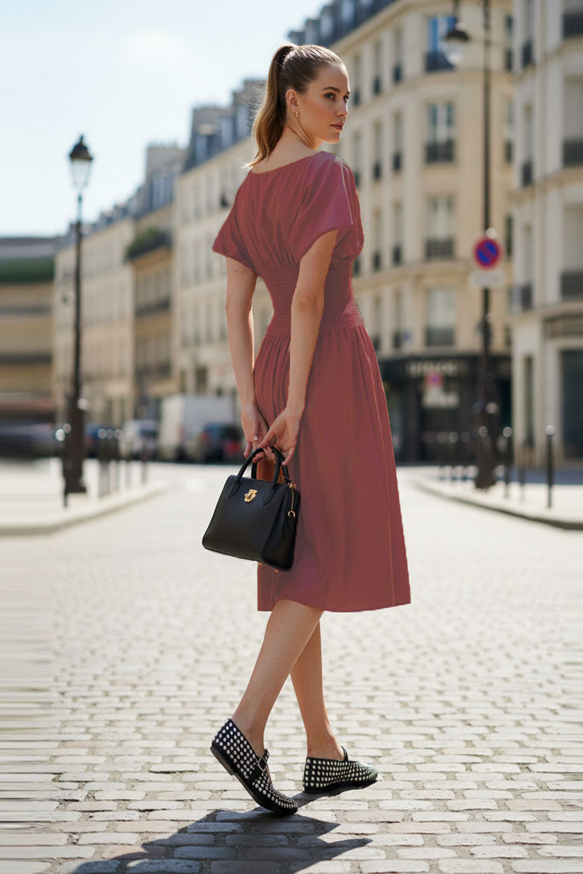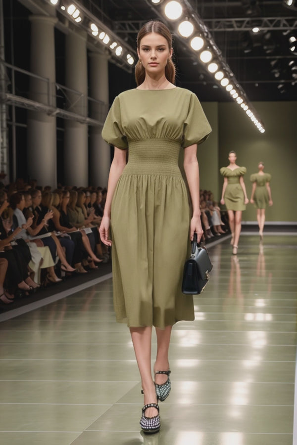 WAIST SMOCKED MIDI DRESS