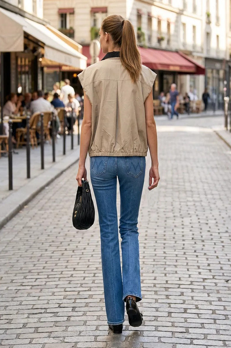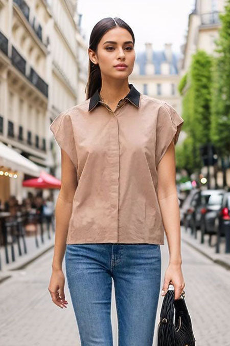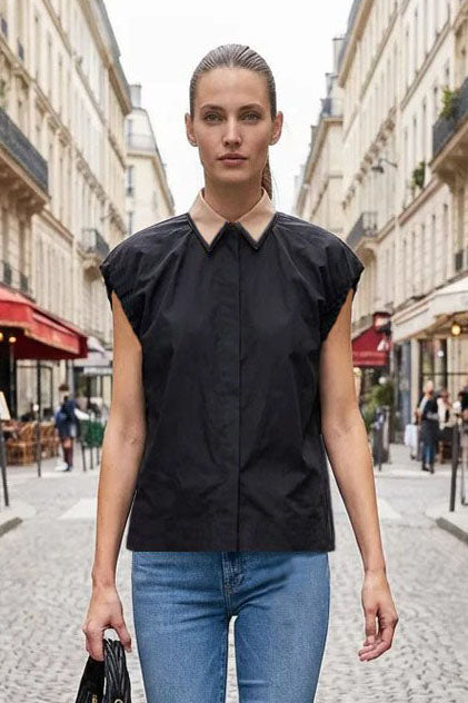 Button placket blouse with bubble short sleeves and detachable collar. Extra collar included.